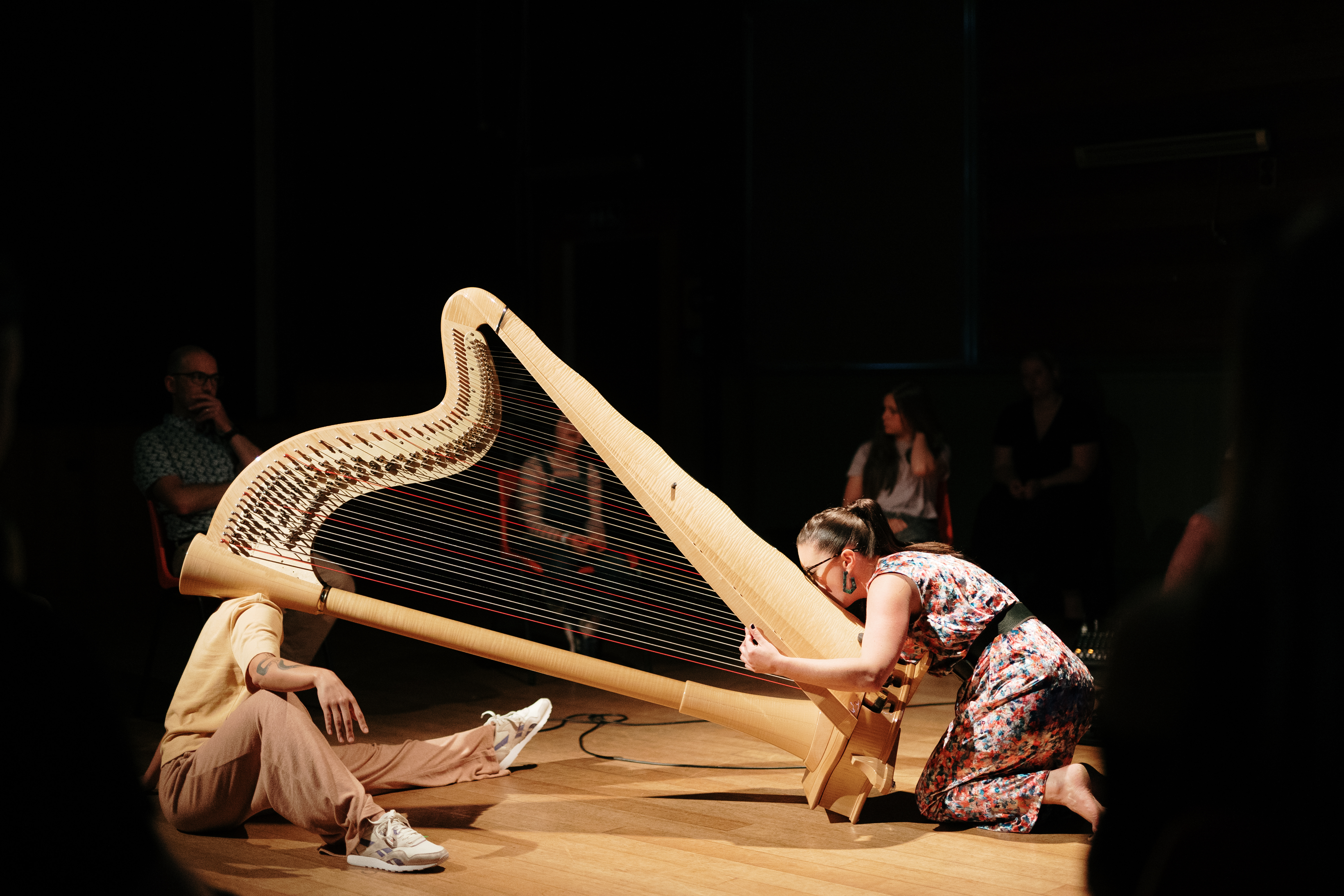 The harp, in its grand stature, seeping with ephemerality and historical weight, is the centre point for a symbiotic exploration between musician and dancer.